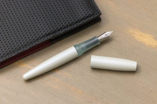 The Mother of Pearl (Ivory) Vertex Fountain Pen Limited Release is our pocket-ready, snap-cap fountain pen perfect for everyday carry featuring one of the most experimental Cerakote finishes, heavy FX metallic over white. The stunning results of additional metallic FX-117 Mardi Gras mixed into the final clearcoat application laid heavily over the base white Cerakote, provides a unique finish that is unlike any other Cerakote or even non-metal fountain pen on the market. The color-shift on this pen is ramped up to 11; it’s beautiful. Select from any of our available grip sections in anodized aluminum or Makrolon, the Mint and Pink look particularly good with the Cerakote. Select from wide variety of polished steel nibs to further customize your pen to your specifications. Ships in our recyclable packaging with a custom vinyl sticker. The Vertex fountain pen is the latest step in our Design.History.Technology influenced Signature Series.